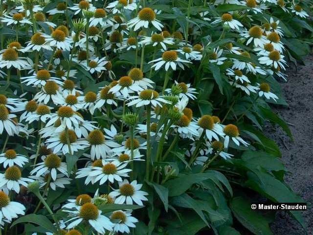 Unermüdlich und reich blüht dieser weiße Sonnenhut den ganzen Sommer über und zieht in Scharen Schmetterlinge und Bienen an. Auch für die Blumenvase gut geeignet.