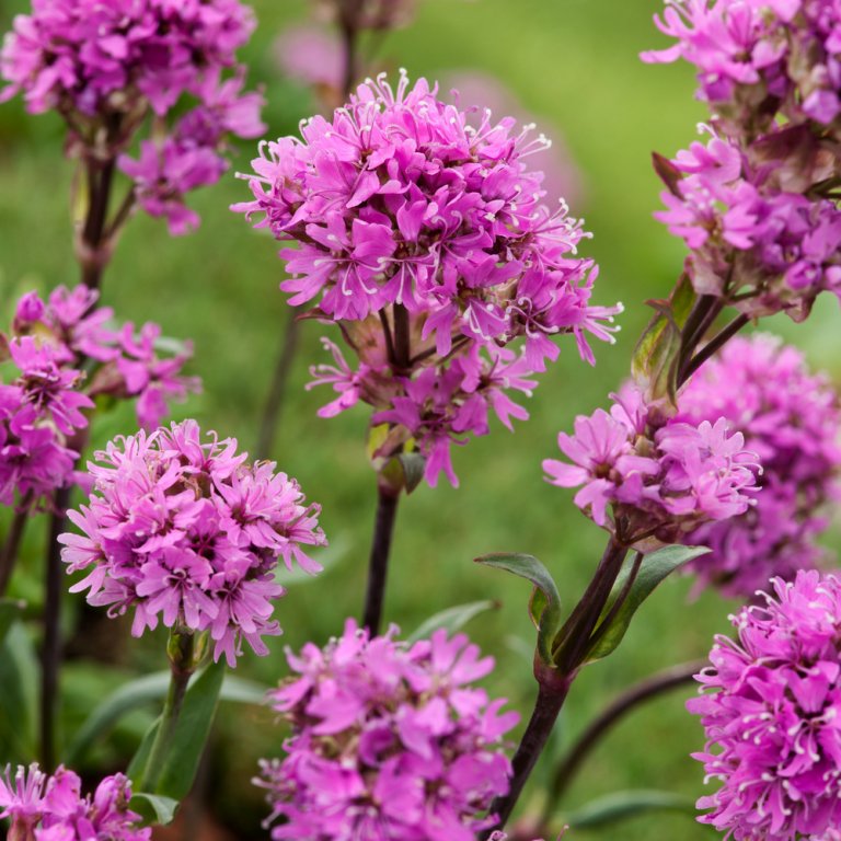 Über den grazilen, schmalen Blättern der Pechnelke erscheint im 5-6 ein Meer von Blütenrispen mit Einzelblüten in feurigem Rot. Schön zu Schleifenblumen und Polsterphlox.