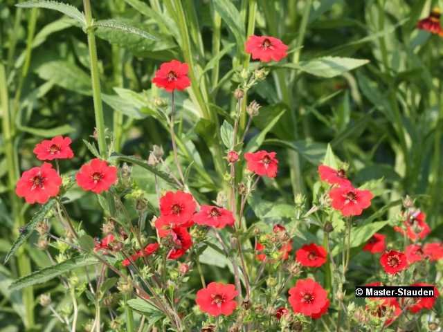 Das Fingerkraut erblüht im Sommer in lockeren, karminrosa Blütenständen. Die einzelnen Blüten haben eine dekorative, dunkle Zeichnung. Als Rabattenstaude findet sie Verwendung am schattigen Gehölzrand- sie verträgt aber auch einen sonnigen Standort. Nährstoffreiche und durchlässige Böden sagen dem Fingerkraut am meisten zu. Zusammen mit Wildstauden fühlt sich die Rabattenstaude in Ihrem Garten am wohlsten.
