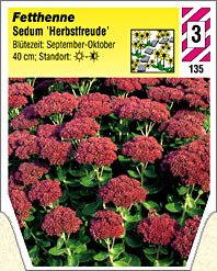Die Sedum sind Durstkünstler, die die sonnigsten Plätze sowie steinige Böden vertragen. Sie besitzen auch verblüht im Winter noch ihren Reiz. Erst im Frühjahr zurück schneiden!