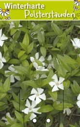 Vinca minor ist ein hervorragender Bodendecker, der dichte Teppiche bildet. Beete unter Gehölzen werden mit dieser Staude sehr schnell begrünt. Vinca ist ganzjährig belaubt.