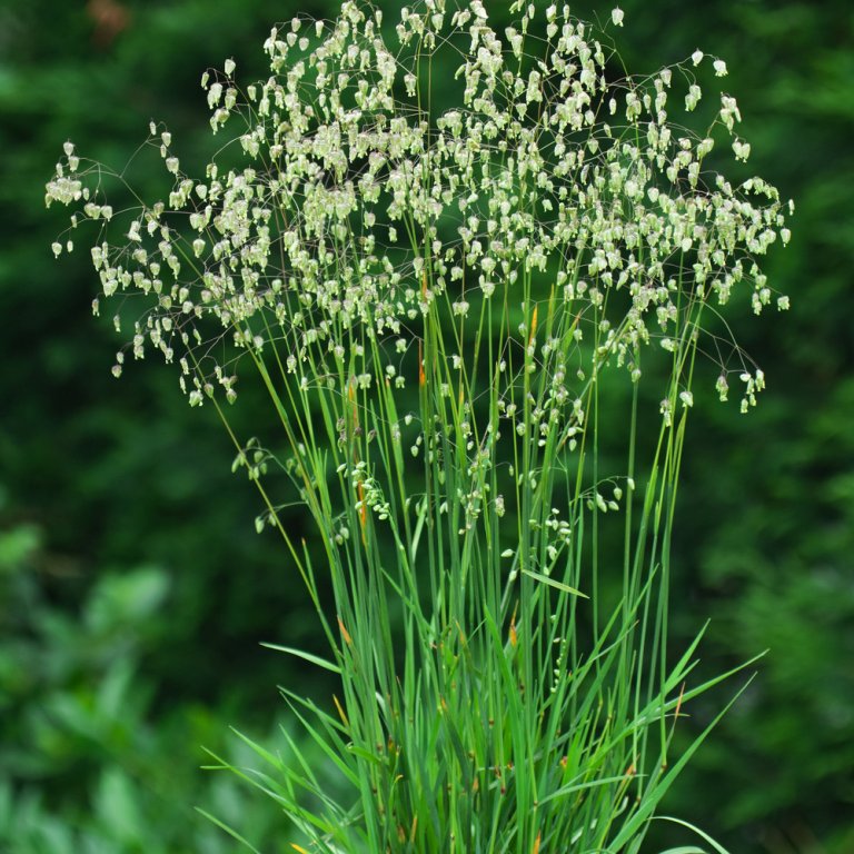Beim geringsten Windhauch werden die violett angehauchten Ähren des horstartig wachsenden Ziergrases in zittrige Bewegungen gesetzt. Es ist hervorragend für Trockensträuße geeignet.