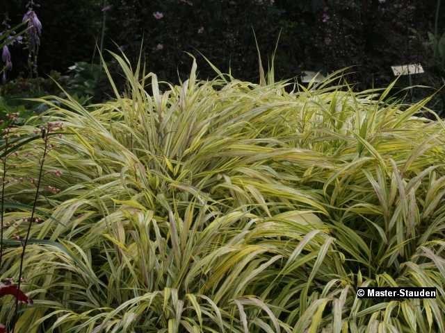 Das attraktive Goldbandgras hellt durch seine gelb gestreiften, bogig überhängenden Halme schattige Gartenbereiche auf und ziert durch sein attraktives Farbenspiel ab den ersten kalten Nächten mit Rosa- und Kupfertönen. Es bevorzugt eher feuchte, humose Standorte ohne Staunässe im lichten Schatten von Gehölzen. Es ist unverzichtbar für Japan-Gärten, eignet sich sehr gut für die Kübelbepflanzung und wirkt spektakulär zusammen mit blauen und roten Blattschmuckstauden, wie Funkien und Purpurglöckchen. Für etwas Winterschutz ist es dankbar.