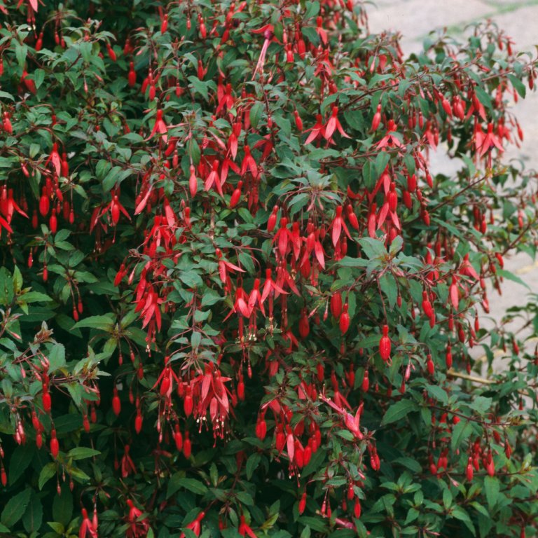 Pflege: Laubdecke als Winterschutz. Die Winterharte Fuchsie ist ein graziler, leicht überhängend wachsender, unermüdlicher Sommerblüher, Nachbarn: Silberkerzen, Funkien oder Farne.