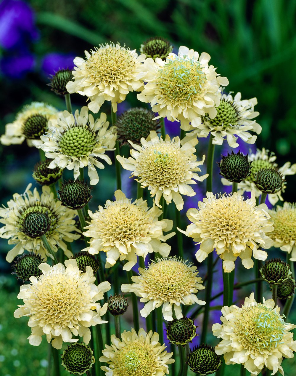 Die imposante Solitärstaude mit stattlichem, sparrig-verzweigtem Wuchs trägt hellgelbe, an Skabiosen erinnernde Blütenköpfchen auf langen Stielen.