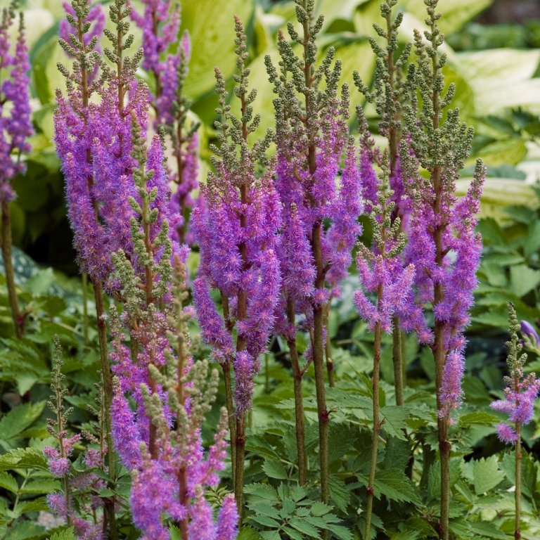 In schattigen und halbschattigen Gartenteilen ist die Leuchtkraft und Eleganz der Prachtspierenblüten unübertroffen. Begleitpflanzen sind Farne, Funkien oder Silberkerzen.