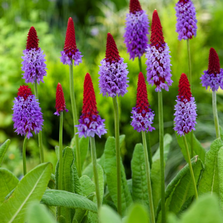 Auf den feuchten Wiesen und zwischen immergrünen Gehölzen der chinesischen Provinzen Yünnan und Szechuan ist diese auffallende Primelart zu Hause. Ihre scharlachroten Blütenkelche öffnen sich von unten nach oben und geben dabei den Blick auf zahllose, lavendelblaue Blütchen frei. Die Orchideenprimel liebt Halbschatten und feuchten, humosen Boden. Zwischen Gehölzen, aber auch im Steingarten, harmoniert sie gut mit Herbst-Steinbrech, Schwalbenwurz-Enzian und Pfauenrad-Farn.