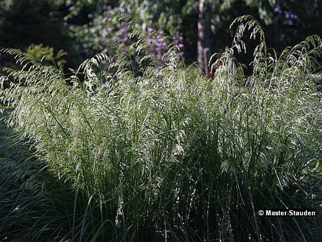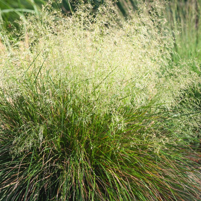 Die lockeren, zarten Blütenrispen der Waldschmiele sehen entzückend aus, wenn sie sich unter dem morgendlichen Tau beugen. Zusammen mit Astilben und Eisenhut pflanzen.