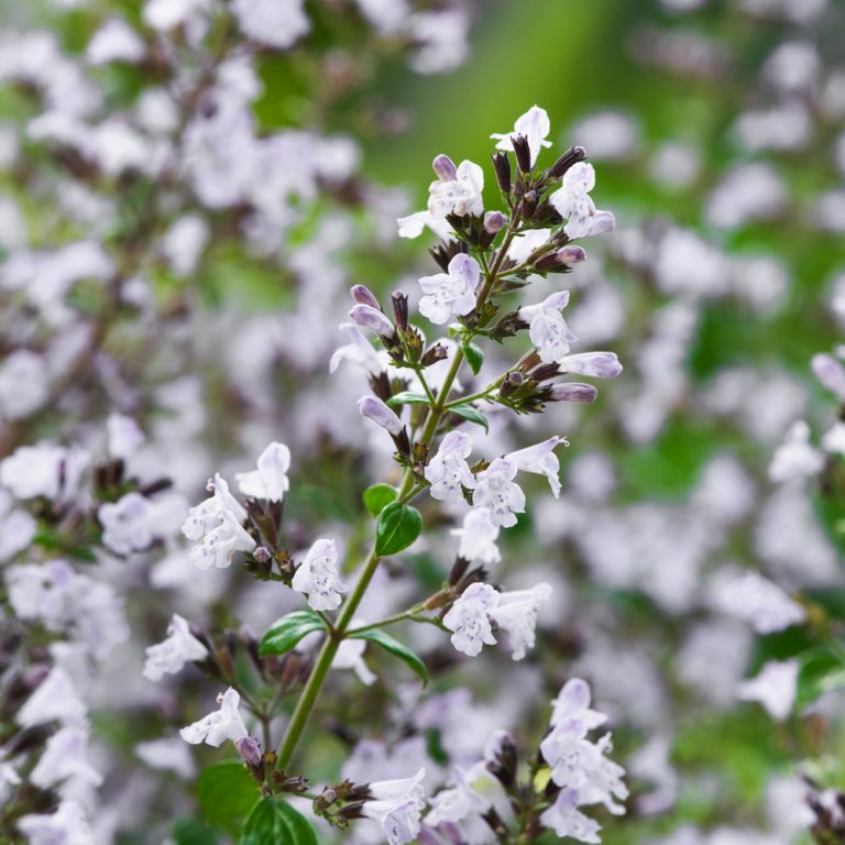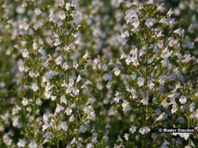 Eine ideale Begleitpflanze für Rosen ist der Steinquendel. Im Sommer erscheint die Vielzahl der kleinen, hellvioletten Blütchen wie ein einziges Blütenmeer.
