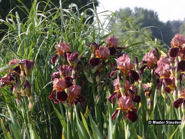 Am schönsten wirken Iris in größeren Gruppen, zusammen mit anderen Trockenheit liebenden Stauden wie Santolinen, Lavendel oder Thymian, aber auch in Rabatten mit Taglilien.