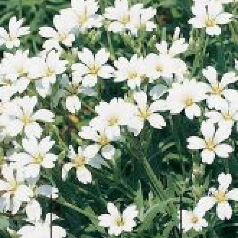 Hornkraut bildet mit seinen weißfilzigen Blättchen größere Polster, die sich im 5 mit weißen Blütchen bedecken. Glockenblumen, Lein und Seifenkraut sind ideale Begleiter.