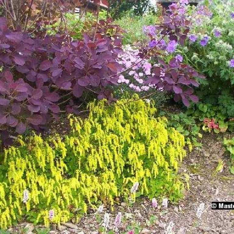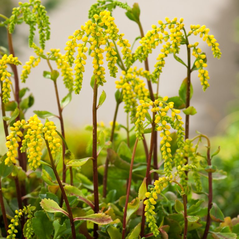 Der Name Goldtröpfchen weist auf die tropfenartige Anordnung der goldenen Einzelblüten hin. Das fleischige Laub verrät uns, dass das Goldtröpfchen gut Trockenheit verträgt.
