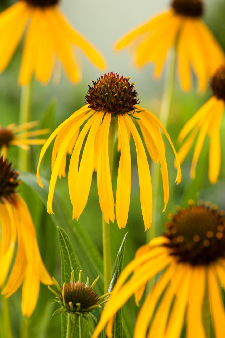Unermüdlich und reich blüht dieser gelbe Sonnenhut den ganzen Sommer über und zieht in Scharen Schmetterlinge und Bienen an. Auch für die Blumenvase gut geeignet.