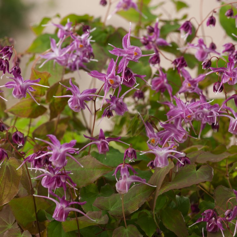 Die rosa blühende Elfenblume ist einer der beliebtesten Flächendecker für humusreiche Böden im lichten Schatten. Das graziöse, im Austrieb auffallend rote Laub zeigt sich im Sommer grün mit rotbrauner Zeichnung und geht im Herbst in einen leuchtenden Braunton über. Vor und zwischen Gehölzen, darf diese wüchsige Staude nicht fehlen. Das gefällige, schön gezeichnete Laub bereichert den Herbstgarten durch seinen warmen Braunton.