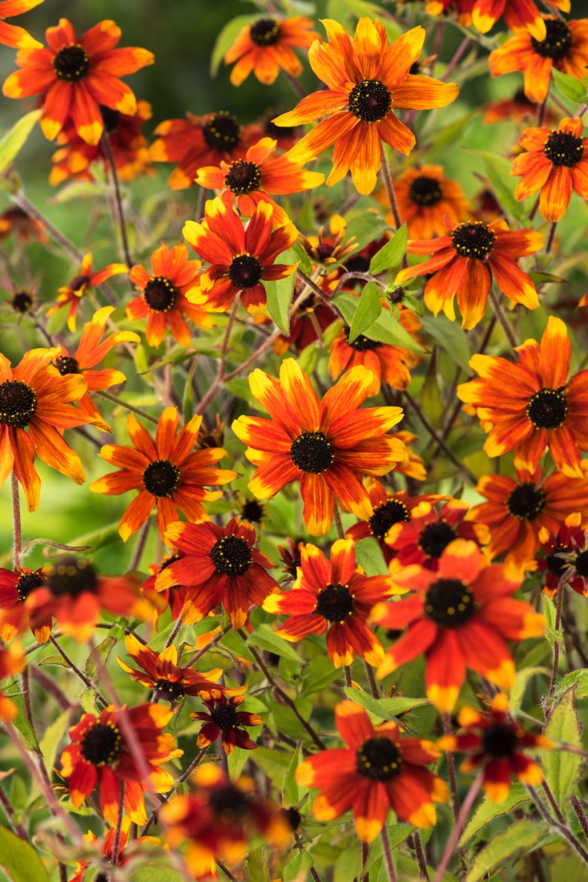 Die vielen Blüten des Dreilappigen Sonnenhutes begeistern durch ihr interessantes Farbspiel beim verblühen. Sie sind zunächst gelb mit roter Mitte und schwarzem Auge. Zum Herbst hin verändern sich die Blüten zu einem Bronze- bzw. Orangeton. Im Winter haben die kugeligen Samenstände einen hohen Zierwert. Diese eher kurzlebige Staude, erhält sich sehr gut durch Selbstaussaat. Sie möchte einen sonnigen Standort mit frischem, durchlässigen Boden. Schon im ersten Standjahr hat sie einen sehr üppigen Blüteflor.