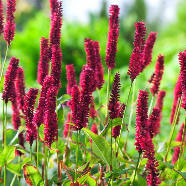Der Kerzenknöterich 'Blackfield' überzeugt durch seine ausgesprochen lange Blütezeit. Von Juli bis Oktober stehen die prächtigen dunkelroten Blütenkerzen als schöner Kontrast über den grünen breit-lanzettlichen Blättern. Er ist eine wertvolle Nährpflanze für unsere Insekten. Der Kerzenknöterich liebt einen frischen und durchlässigen Boden in sonniger bis halbschattiger Lage.