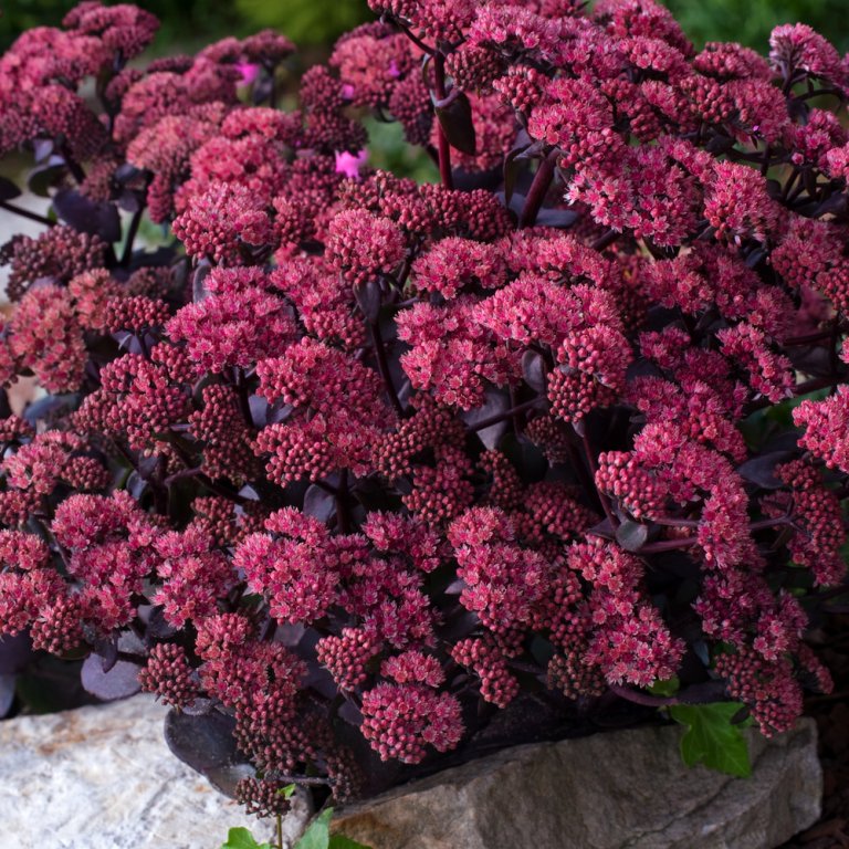 Sedum 'Xenox' beeindruckt durch sein dunkles, bräunlich-rotes Laub. Die Färbung wird im Laufe des Sommers immer kräftiger und dunkler. Darüber stehen die großen rosa-roten Blütenteller. Sie besitzen auch verblüht im Winter noch ihren Reiz. Die Sedum sind Durstkünstler, die die sonnigsten Plätze sowie steinige Böden vertragen. Erst im Frühjahr komplett zurück schneiden! Die Fetthenne ist eine wertvolle Bienenweide.