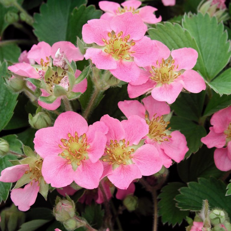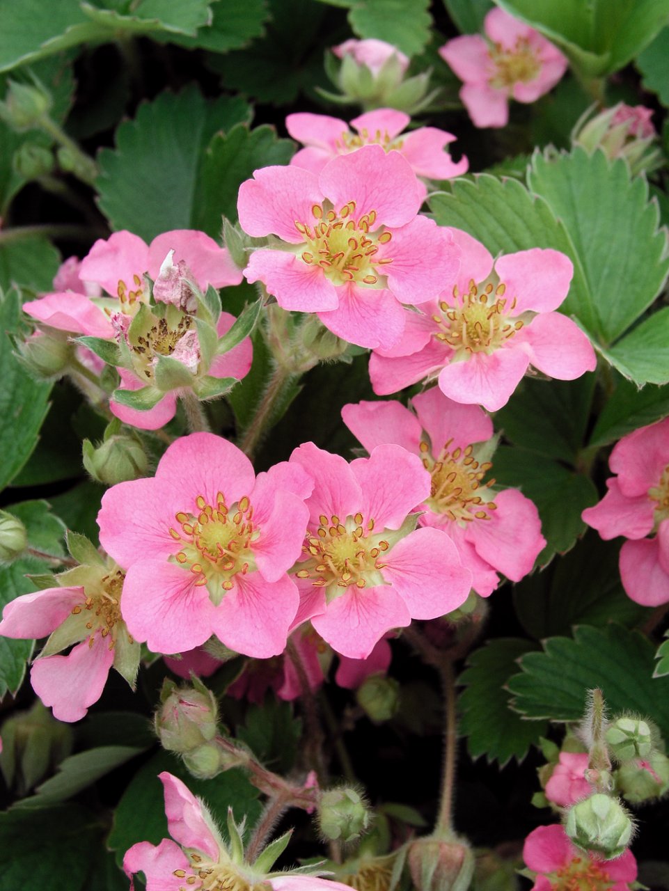Trägt kaum Früchte. Diese sind aber eßbar! Zierend sind die rosafarbenen Blüten und das kräftige, gänzende Laub. Diese Art wächst bodendeckend. Langlebig und winterhart.