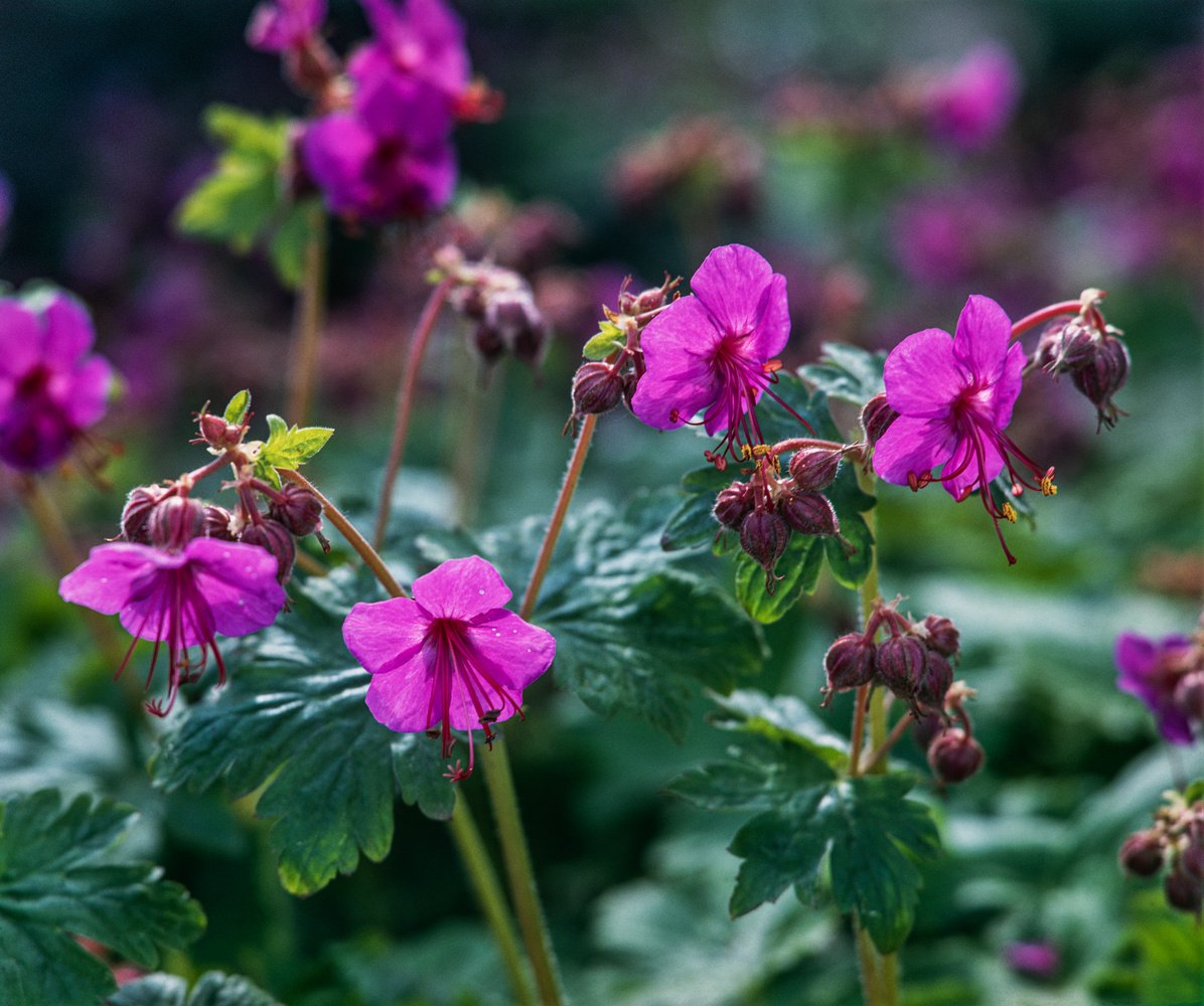 Der Balkan-Storchschnabel besitzt einen aromatischen Blatt- und Blütenduft, sowie die attraktive, rötliche Blattfärbung im Herbst. Robuster Flächendecker unter Gehölzen.