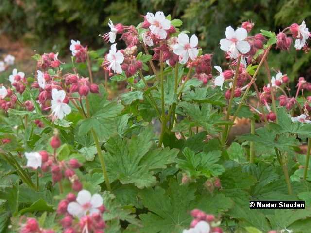 Der Balkan-Storchschnabel besitzt einen aromatischen Blatt- und Blütenduft, sowie die attraktive, rötliche Blattfärbung im Herbst auf. Robuster Flächendecker unter Gehölzen.