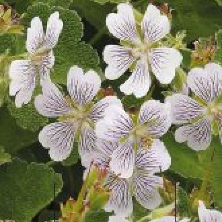 Samtweiche, graugrüne Blättchen und dekorative weiße Blüten, mit violetten Adern durchzogenen. Auf trockenen Böden am Gehölzrand oder als Beeteinfassung ideal.