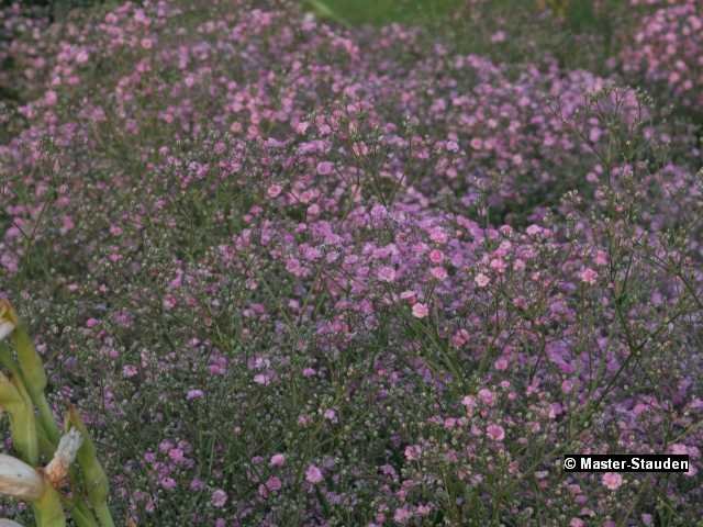 Die flachen, raschwachsenden Polster wirken besonders schön in Verbindung mit Stufen und Platten und in Fugen. Von 5 bis 7 hüllen sie sich in hellrosa Blütenwolken.
