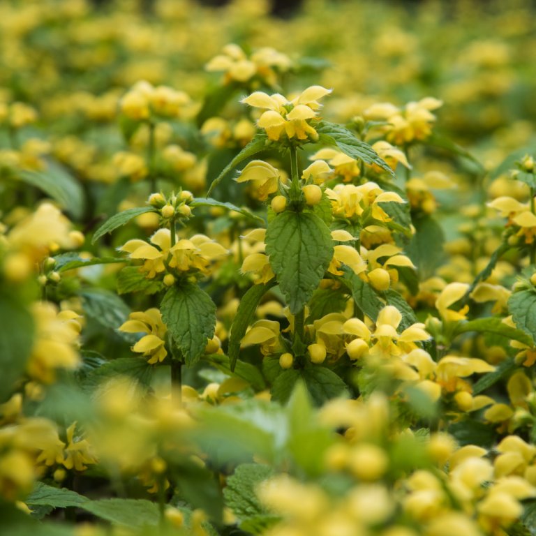 Die Goldnessel ist ein unentbehrlicher Bodendecker, der selbst im tiefen Schatten noch problemlos gedeiht. Im Mai setzen die großen Lippenblüten hübsche, gelbe Farbtupfer in den dichten Laubteppich der robusten Goldnessel. Mit ihren langen, rankigen Ausläufern überzieht sie rasch auch große Flächen unter Laubgehölzen und verdrängt dabei lästiges Unkraut.