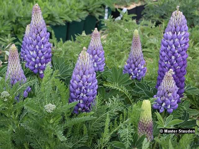 Lupinen gehören mit ihren Blütenkerzen zu den farbenprächtigsten Stauden. Sie passen sehr gut zu Staudenmohn und Schwertlilien. Abgeblühte Blütenstände herausschneiden.