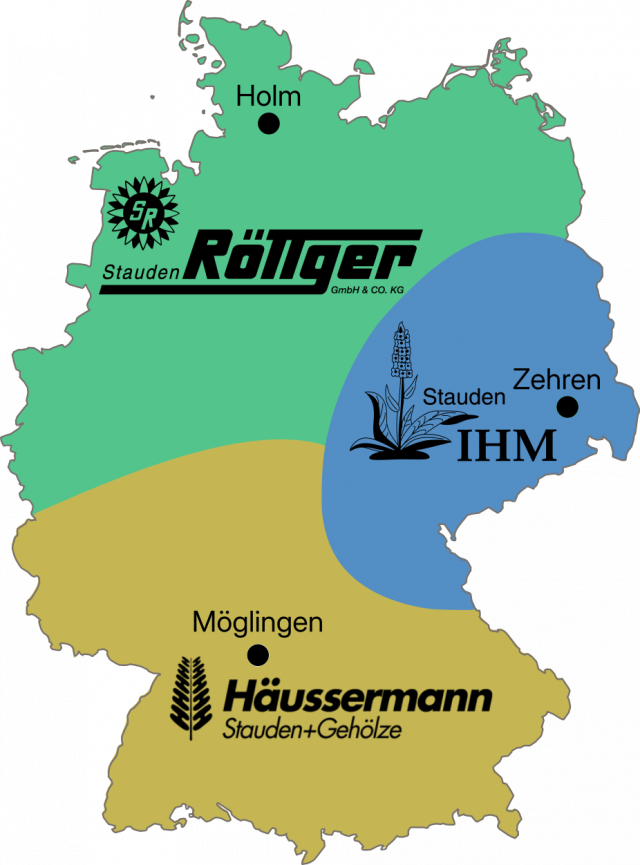 Anzucht, Lieferung und letztendlich Absatz von Stauden gemeinsam mit Ihnen als Kunden optimieren! Mit dieser Zielsetzung haben sich die Firmen Häussermann Stauden und Gehölze, Stauden Ihm und Stauden Röttger zu einer Kooperation zusammengeschlossen und vertreiben bundesweit ihre Produkte unter dem Markennamen MASTER STAUDEN. Dabei behalten die inhabergeführten, mittelständischen Betriebe ihre Eigenständigkeit und damit ihre Flexibilität.