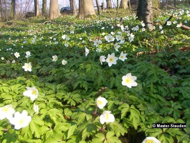 Das Buschwindröschen verwandelt die heimischen Laubwälder mit seinen weißen, schalenförmigen Blüten im Frühjahr in ein leuchtendes Blütenmeer. Als Gehölzrandbewohner bevorzugt diese reizvolle Wildstaude humusreiche, schwach saure und leicht feuchte Böden. Schöne Begleiter im Halbschatten sind Waldmeister, Lungenkraut, Duftende Schlüsselblume und Farne.