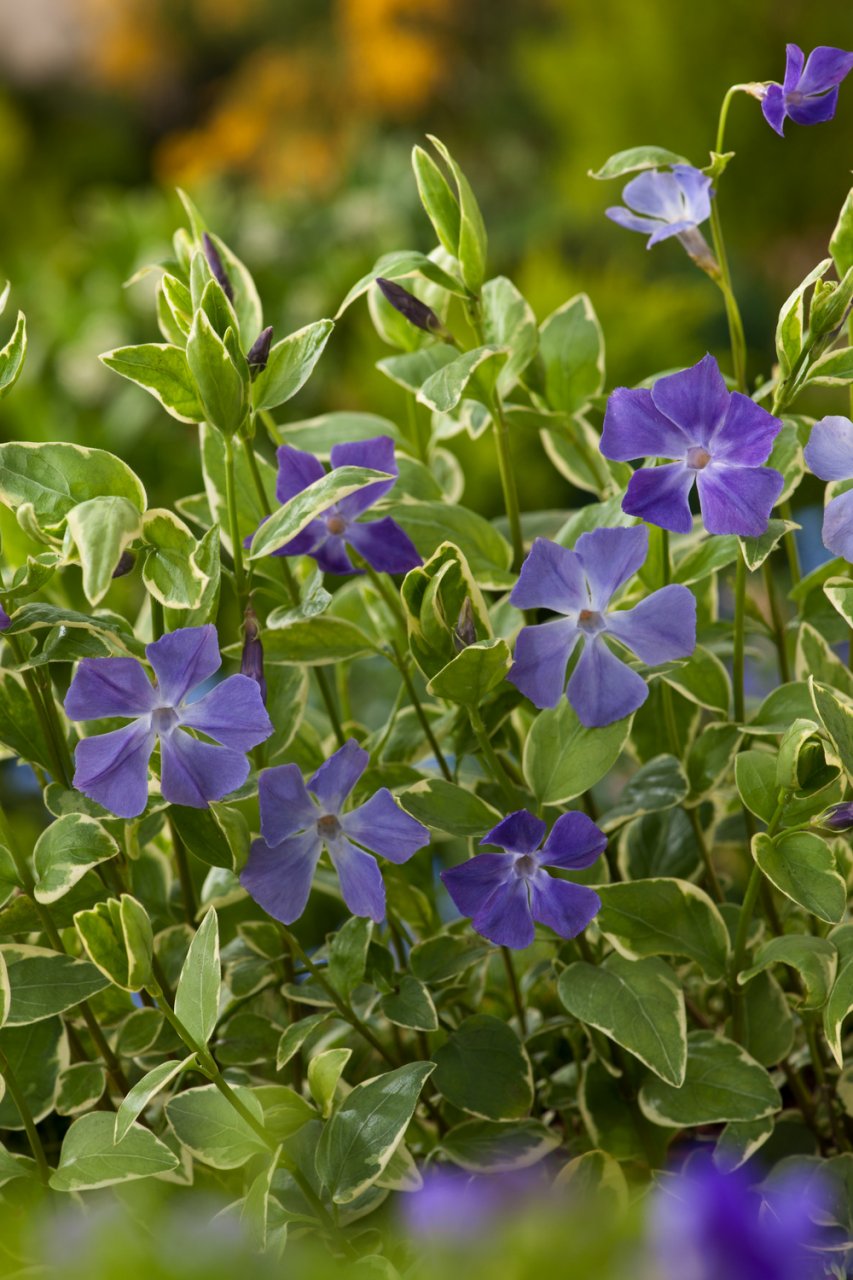 Vinca ist ein hervorragender Bodendecker, der dichte Teppiche bildet. Beete unter Gehölzen werden mit dieser Staude sehr schnell begrünt. Vinca ist ganzjährig belaubt.