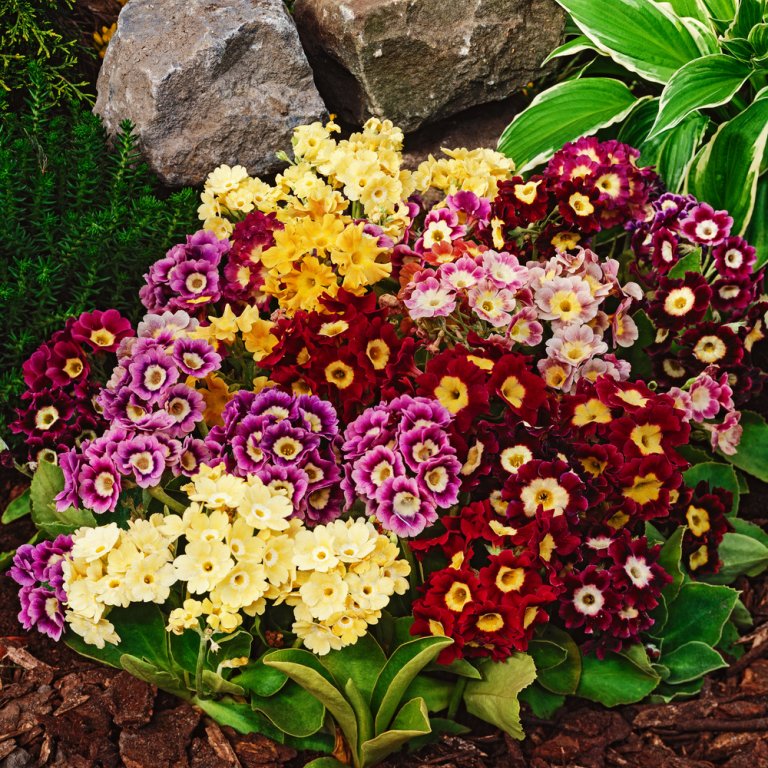 Alte Polsterstaude aus Großmutters Bauerngarten, die leider etwas in Vergessenheit geraten ist. Die Aurikeln vertragen verhältnismäßig viel Sonne, aber auch Halbschatten.