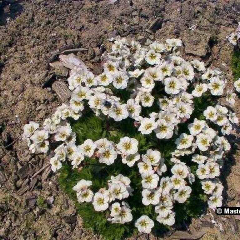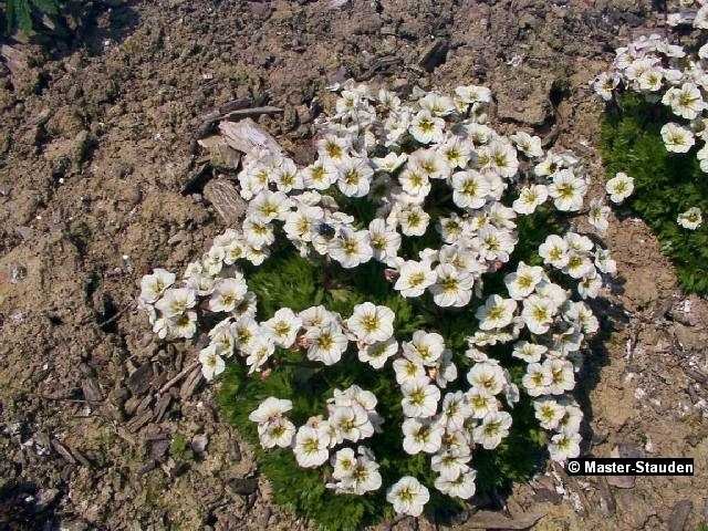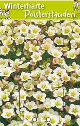 Moosartige, große Polster bildende Staude. Im Winter, wenn der Reif den immergrünen Rosetten weiße Ränder zaubert, hat der Moossteinbrech noch einmal seinen großen Auftritt.