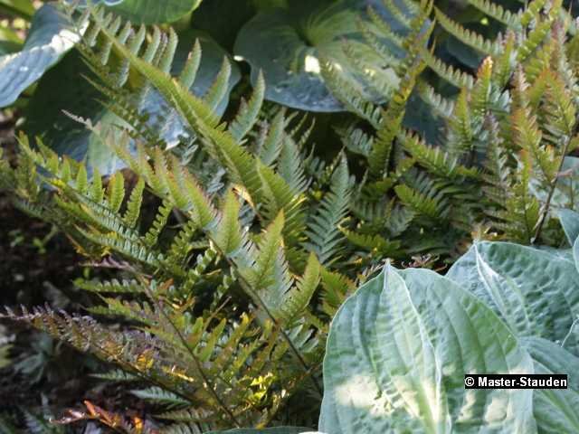 Anspruchsloser Farn, der auch in unseren Wäldern heimisch ist. In Gruppen gepflanzt kommt der Wurmfarn am besten unter Gehölzen zur Geltung.