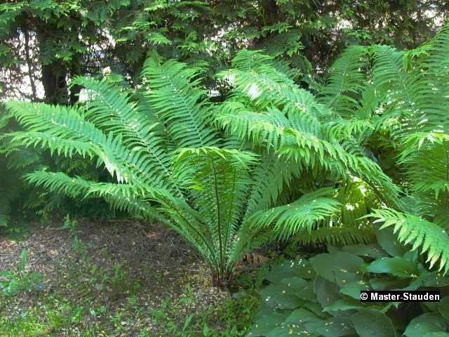 Anspruchsloser Farn, der auch in unseren Wäldern heimisch ist. In Gruppen gepflanzt kommt der Straußfarn am besten unter Gehölzen zur Geltung.