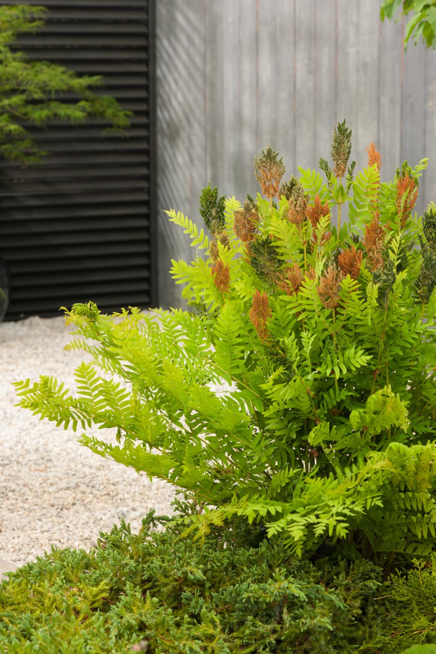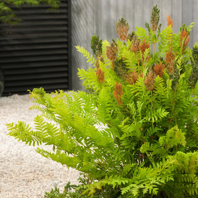 Der Königsfarn ist aufgrund seiner leuchtenden Sporenkerzen und gefiederten, hellgrünen Wedel einer unserer schönsten Gartenfarne. Im Herbst färbt er sich intensiv gelb bis gelbbraun. Auf nährstoffreichen, feuchten kalkfreien Böden in halbschattiger bis schattiger Lage wächst er sehr üppig. Besonders schön wirkt er in Einzelstellung oder lockeren Gruppen an Teichen oder Bachläufen, zwischen oder vor Gehölzen. Hübsche Begleiter sind Eisenhut, Astilben oder Tränendes Herz.