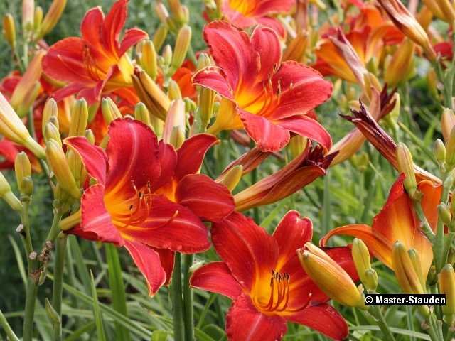 Die trichterförmigen Einzelblüten halten zwar nur einen Tag, jedoch öffnen sich in einer Folge wochenlang täglich neue Blüten. Die großen Horste wirken schön in Einzelstellung.