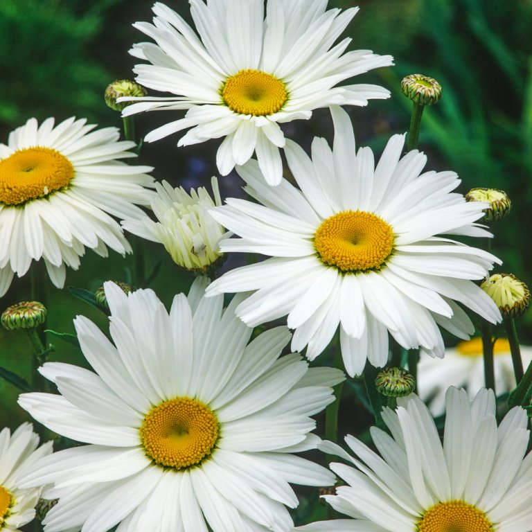 Die blendend weißen Blüten mit der dottergelben Mitte leuchten weithin und erscheinen in Massen.