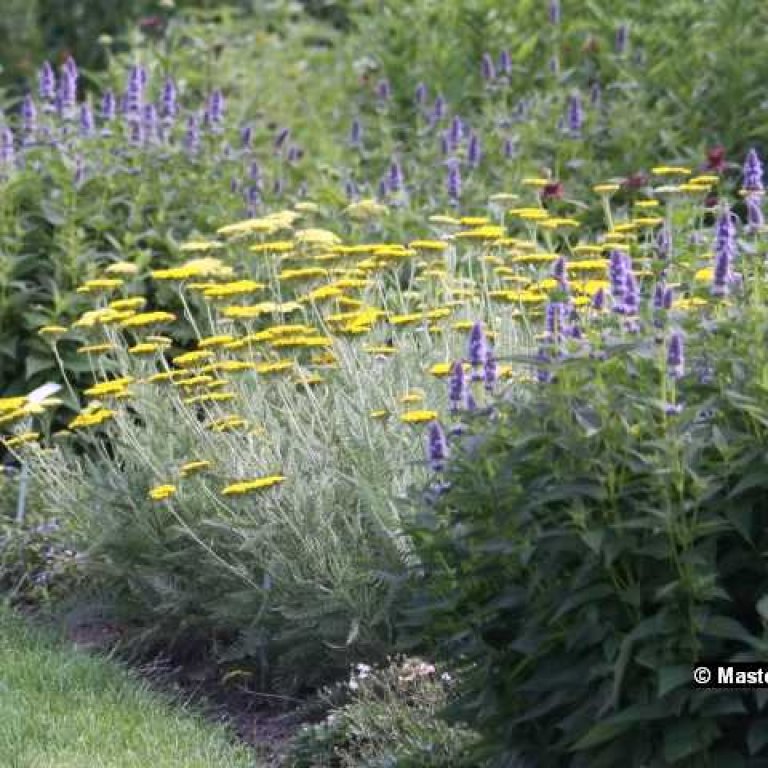 Dekorative Blütenstände über graugrünen, aromatisch duftenden Fiederblättern. Nachbarn: blauer Gartensalbei, Edeldisteln und Gräser. Schnittstaude auch für Trockensträuße.