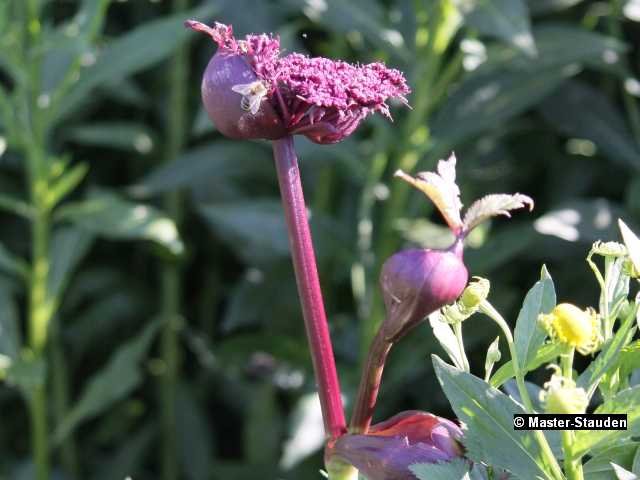 Die Rote Engelwurz beeindruckt durch ihre stattliche Größe und den schönen Kontrast zwischen grünem Laub und den dunkelroten Trieben und Blüten. Sie bevorzugt nährstoffreiche und frische Böden. Eine schöne Insektenweidefür den Teichrand oder vor Gehölzen.