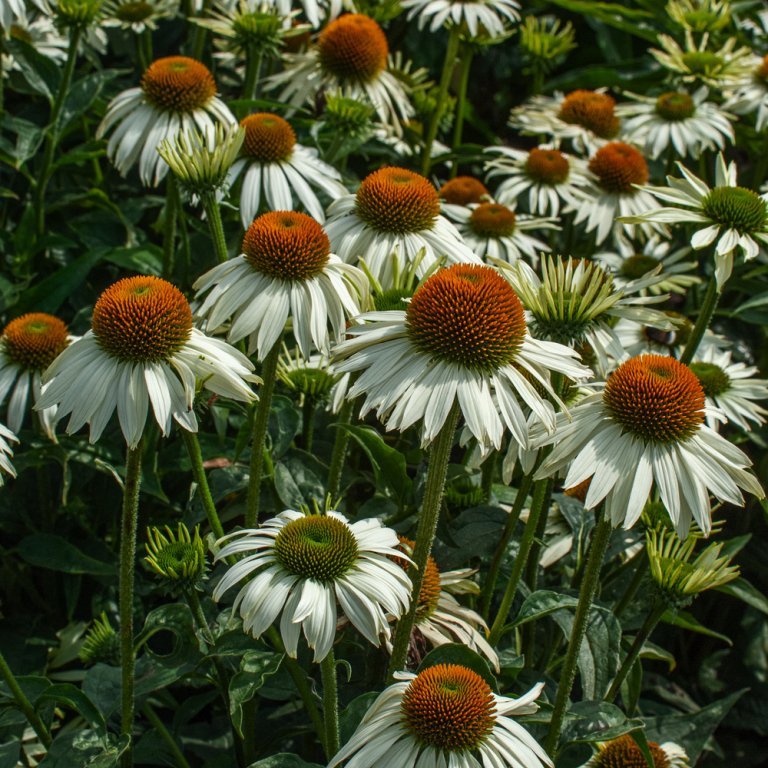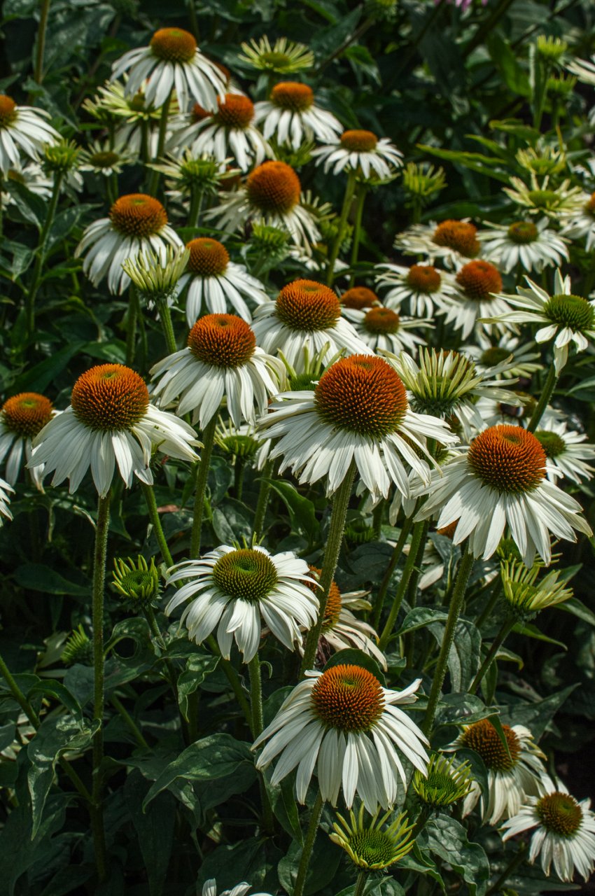 Unermüdlich und reich blüht dieser weiße Sonnenhut den ganzen Sommer über und zieht in Scharen Schmetterlinge und Bienen an. Auch für die Blumenvase gut geeignet.