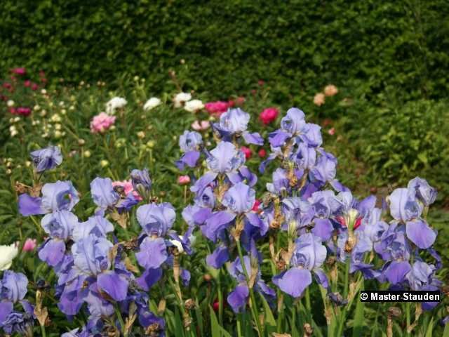 Am schönsten wirken Iris in größeren Gruppen, zusammen mit anderen Trockenheit liebenden Stauden wie Santolinen, Lavendel oder Thymian, aber auch in Rabatten mit Taglilien.