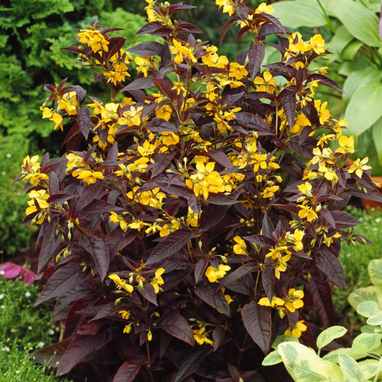 Diese kontrastreiche Neuzüchtung besitzt leuchtend gelbe Blüten über kräftig dunkelrotem Laub. Der Bewimperte Felberich wächst bevorzugt auf frischen und feuchten Böden und eignet sich daher gut für großzügige Gruppenpflanzungen am Wasserrand. Das rote Laub dieser Staude ist ein auflockerndes Gestaltungselement, das Beet und Rabatte belebt und durch graulaubige Stauden noch wirkungsvoll unterstrichen wird.