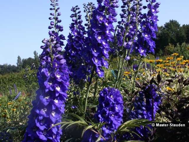 Nicht nur als wichtiger blauer Farbspender, sondern auch in Weißtönen ist Rittersporn im frühsommerlichen und herbstlichen Garten und in Sträußen unverzichtbar. Rückschnitt im Juli.