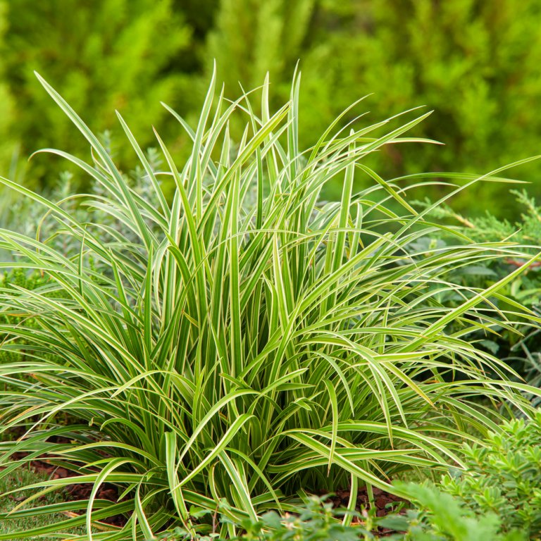 Das breite ledrige Blattwerk ist immergrün. Ideal für Pflanzungen unter Gehölzen. Winterhart und robust. Die Japansegge ist als Bodendecker in schattigen Gartenpartien eine gute Wahl.