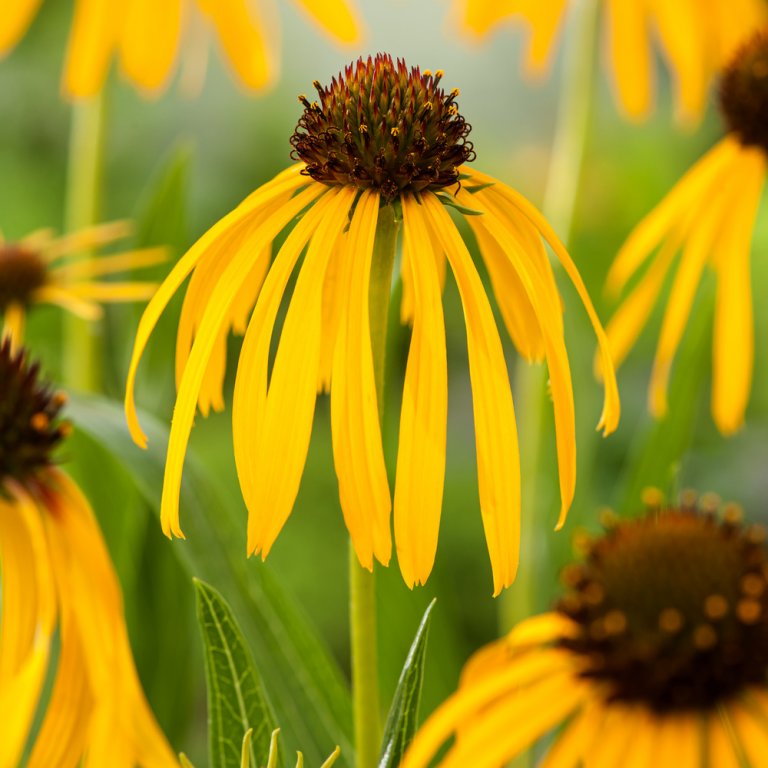 Unermüdlich und reich blüht dieser gelbe Sonnenhut den ganzen Sommer über und zieht in Scharen Schmetterlinge und Bienen an. Auch für die Blumenvase gut geeignet.