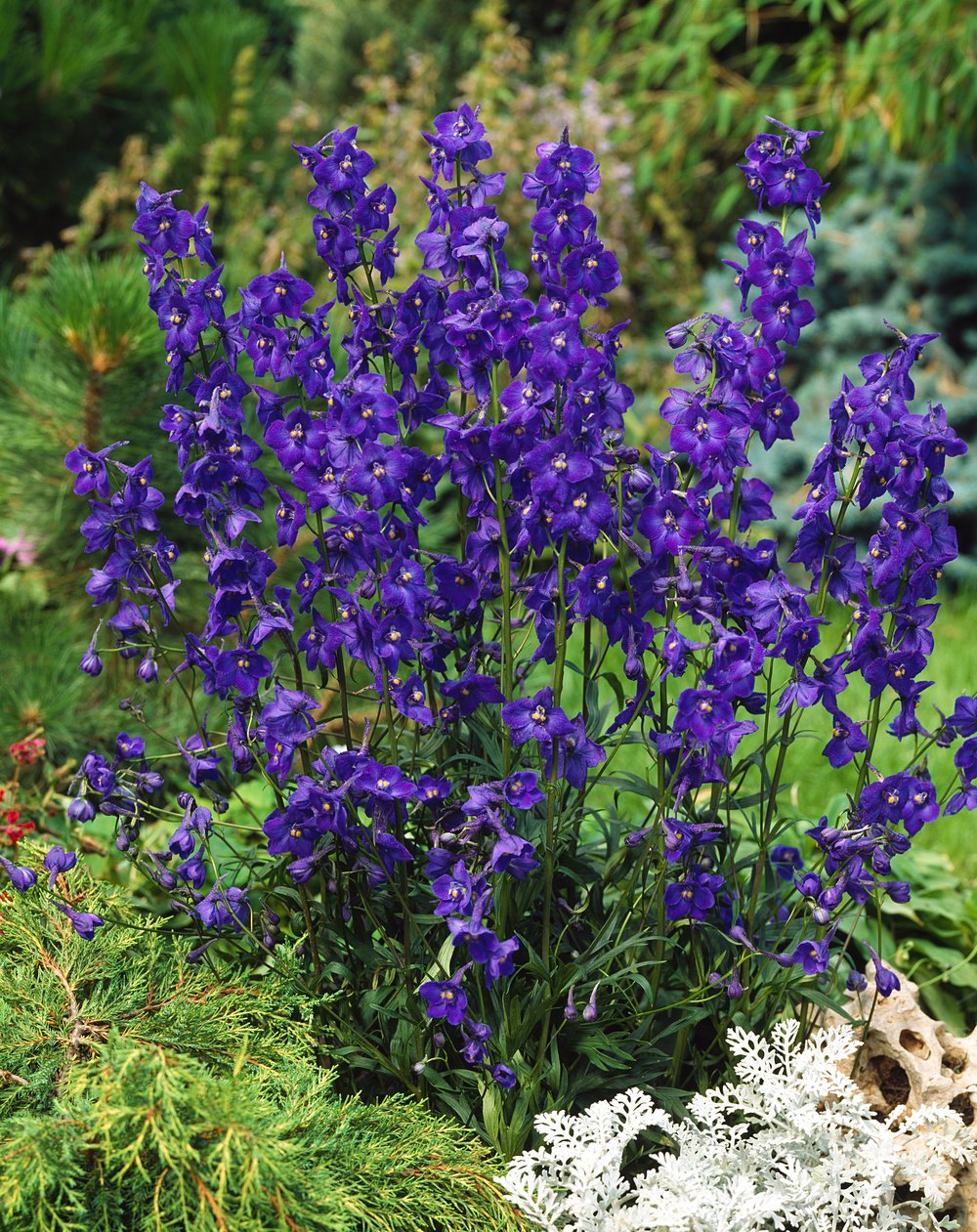 Nicht nur als wichtiger blauer Farbspender, sondern auch in Weiß- und Rosatönen ist Rittersporn im frühsommerlichen und herbstlichen Garten und in Sträußen unverzichtbar. Rückschnitt im Juli.