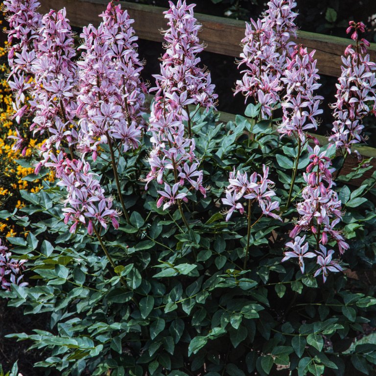 Der Brennende Busch trägt rötliche Blütenkerzen mit sternförmigen Einzelblüten über dem dunkelgrünen, aromatisch duftenden Laub. Er bevorzugt einen sonnigen, geschützten Standort, gedeiht aber auch im Halbschatten. Den Namen verdankt diese elegante Staude der Tatsache, dass die unreifen Fruchtstände bei schwülwarmem Wetter ätherisches Öl absondern, dass mit einer Flamme entzündbar ist.