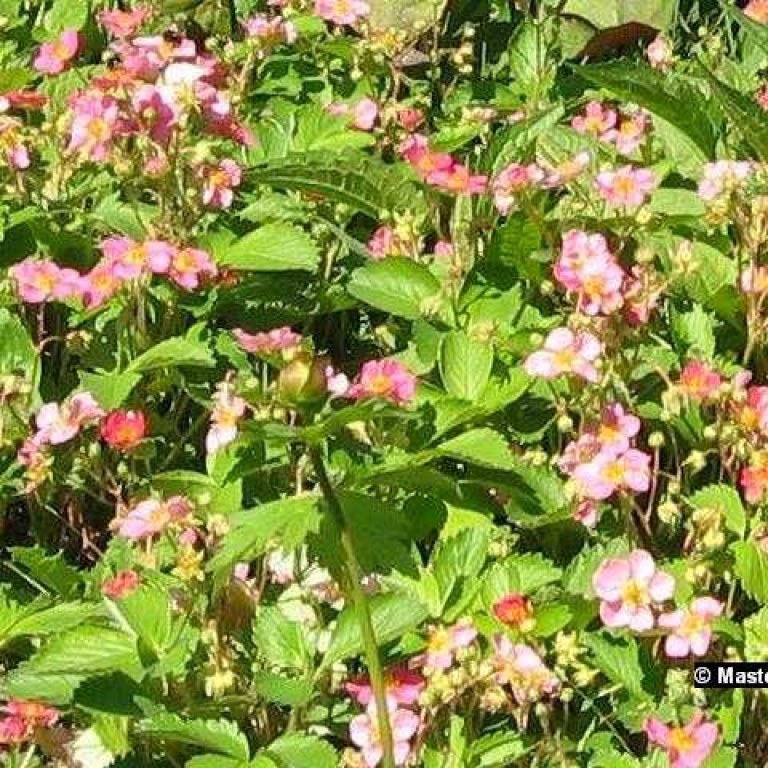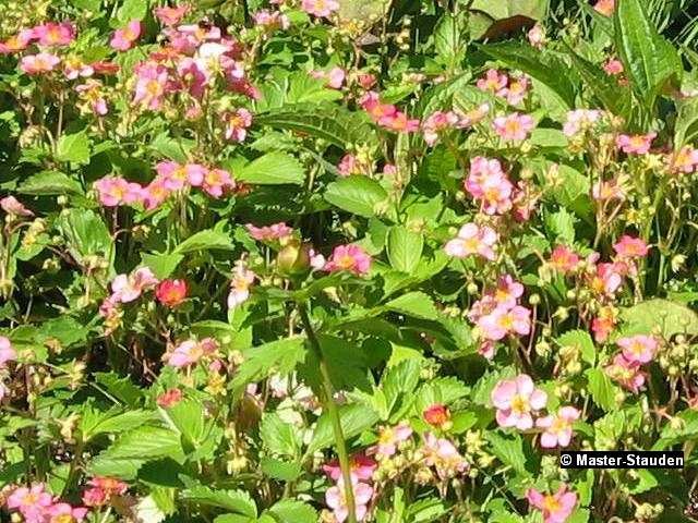 Trägt kaum Früchte. Diese sind aber eßbar! Zierend sind die rosafarbenen Blüten und das kräftige, gänzende Laub. Diese Art wächst bodendeckend. Langlebig und winterhart.