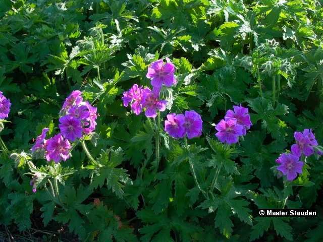 Große, blauviolette Schalenblüten im Sommer und im Herbst prächtiges, rötlich gefärbtes Laub. Der Storchschnabel ist unempfindlich gegen Trockenheit. Sehr pflegeleicht.
